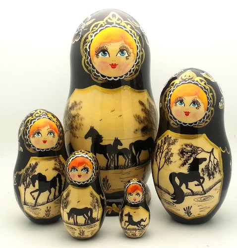 -. Title : Horse Russian Nesting dolls 5 piece Set / 7 1/3"