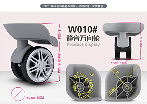 Studio : Shenzhen Honest Chenxi Trading Company Ltd Publisher : Shenzhen Honest Chenxi Trading Company Ltd Product Description Packing list :A pair(1pcs left and 1pcs right) wheel as first photo and come with Screw Material of Item: Plastic (PVC PP) Size of item :As photo show Product features: wear resistant ,Suitable for the use of ordinary luggage box ,And need you have a strong ability in DIY Please see the attached image for the approx. wheel widths for each diameter. 0