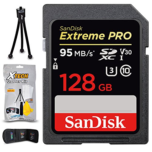 -. Feature : SanDisk Extreme Pro 128GB SDXC UHS-I Card - Ideal for professionals looking to maximize post-production workflow, the Card Read speeds of up to 95MB/s; write speeds of up to 90MB/s, UHS speed Class 3 (U3) and video speed Class 30 (V30) for 4K UHD video Making it an overall ideal memory card for DSLR Cameras. / NIKON COMPATIBLE - 128GB SD Memory Card is compatible with all Nikon D7500 D7200 D5600 D5500 D850 D750 D500 D810 D3400 D3300 D7100 D7000 D800 D610 D600 D80 D90 D5 D3200 D5300 D5200 D5100 D5000 and all Similar Cameras. / DURABLE AND SECURED - Memory card is durable and has a security feature for protecting copyrighted data. / XTECH STARTER KIT - Memory card kit includes an Xtech camera accessories starter kit, the kit includes a memory card wallet holder for conveniently storing memory cards, 2 screen protectors, mini table tripod and camera cleaning material. / HEROFIBER CLEANING CLOTH - Kit includes a HeroFiber ultra gentle cloth designed to clean electronics and accessories.