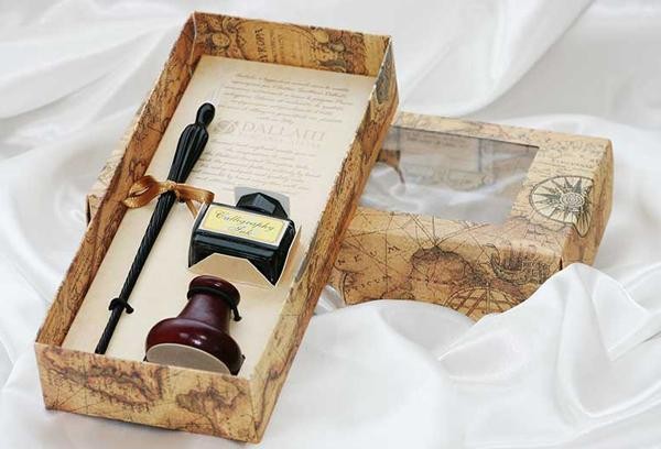 | サイズ | ペンの長さ:175mm、インク瓶:横40×縦27×高さ42mm、ペン立て:最大直径:44×高さ40mm、専用ボックス:縦230×横105×高さ45mm 個装サイズ:25×11×5cm |