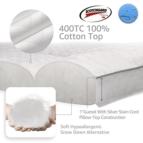 -. Feature : ★QUALITY GROWTH:Upgrade 400T 100% cotton jacquard top, make the mattress pad Luxuriously soft and noiseless.Cotton fabric is made by nature that is more comfortable than polyester fabric, better breathable, the hypoallergenic.and anti-microbial. / ★COMFORTABLE BREATHABLE AND NOISELESS:Each pad is filled lofty Down Alternative poly,that has the feel of authentic goose & duck down.90gsm Peach brushed reverse make the mattress pad soft and noiseless. This mattress provide an extraordinary level of comfort that will change your sleep for the better. / ★BRAND-NAME PRODUCTS :Top fabric with 3M stain release and repellency treatment,all products pass the 3M testing and hanging the 3M identification tag.Dual Action combines is 3M latest advances in stain release and repellency for exceptional stain protection.Highly durable protection lasts wash after wash. Fabric remains soft and breathableIt will be a perfect choice if you're considering a soft,comfortable, breathable mattress pad. / ★STYLE GROWTH:1"guesst with silver stain cord make the mattress pad looks elegant appreance.16 inch high quality deep pocket fit 8-21"Mattress.Filling whole piece of fiber with box stitch prevents fill from shifting or moving around.Fiber proof fabric make the filling never leak from the pad.Machine washable.It is easy to washing and drying,easy to keep it clean. / ★GUARANTEE:Our company has been offering high quality mattress pad to American Retailers (such as Khols and so on) for more than 10 years. Customer satisfaction is our biggest demand, If you are not satisfied, we will give you a full refund!