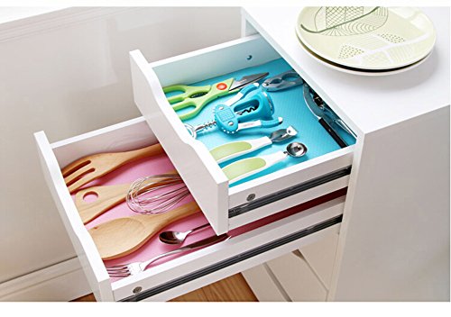 Features: 1.The shelf liner can be cut and apply easily. Used to any size drawer, cabinet. Decorate your home through DIY. 2.Can be isolated from the dust. 3.Can be used as a placemat ,coasters, a table and desk mat, enhance beauty. 4.Durable, Waterproof, dampproof, Non-Adhesive, Non-Slip, Odor 5.Can be used to kitchen cabinet/cupboards, Bathroom drawers/bathroom vanity Under sink, Refrigerator/fridge, Table runner, Bookshelves, Renters or dorms shelf/drawer Closet drawer, kitchen drawers, cooking drawers, art drawers, craftsman drawer, knife pan drawer, silverware or junk drawer, babies room or kids room drawer. It is a great gift for housewarming.