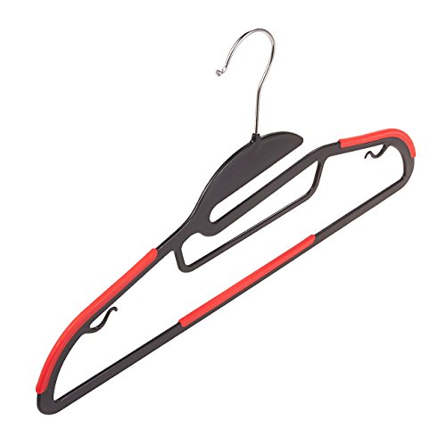 FEATURE-PACKED PREMIUM HANGERS: These luxurious pack of 50 Red Colored Non-Slip Flocked Hangers are smooth and soft to the touch, featuring notched shoulders to prevent slipping, an accessory bar for hanging accessories and 360 degree swiveling hook for maximum hanging convenience