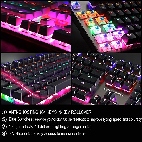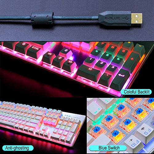 -. Title : E-3LUE Mechanical Gaming Keyboard,104 Keys LED Backlit Water Resistant wired Keyboard with Blue Switch,Anti-ghosting Keys