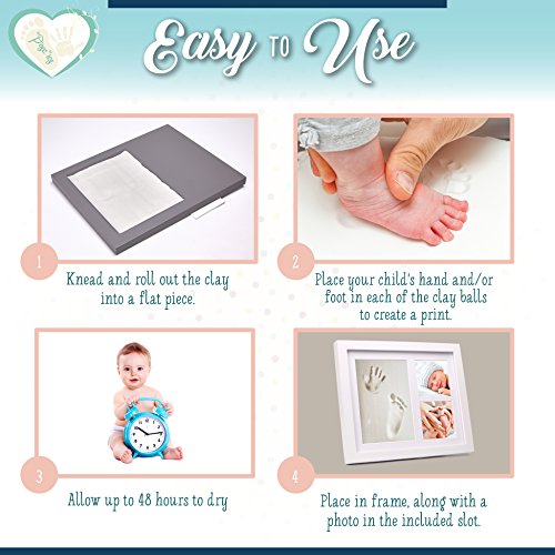 - EVERYTHING INCLUDED: This kit has everything you need - white clay, a roller, wooden photo frame, double sided tape, mounting hardware, and instructions. It's the perfect gift for a baby shower.