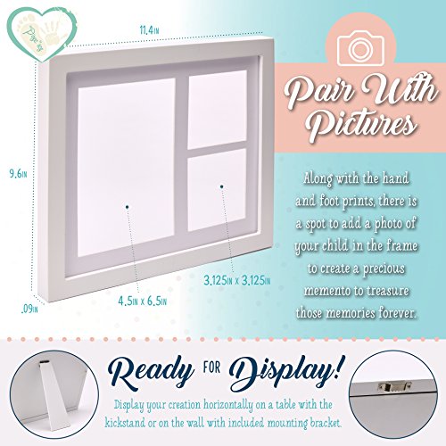 - PAIR THE PRINTS WITH PICTURES: Along with the hand and foot prints, there is a spot to add a photo of your child in the frame to create a precious memento to treasure those memories forever.