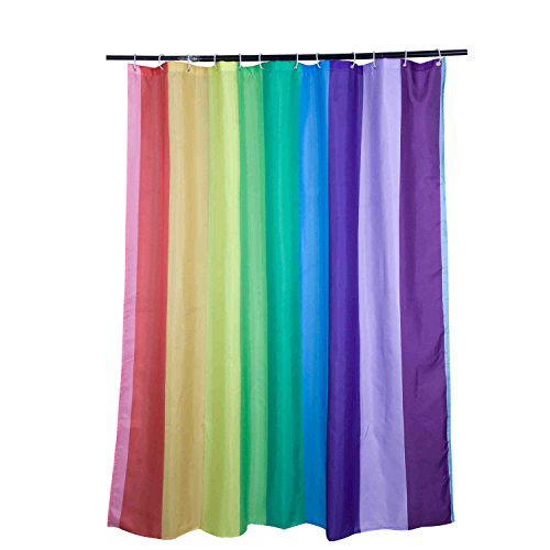 Colorful Stripes Digital Printing Shower Curtain with Hooks (Treated to Resist Deterioration by Mildew and Waterproof) - 72 x 72 inches