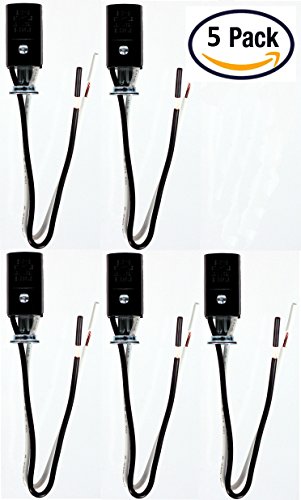 Creative Hobbies #SOCKETHW Candelabra Base Lamp Holder Light Socket, Keyless Phenolic, 6 Inch Wire Leads, Wholesale Pack of 5