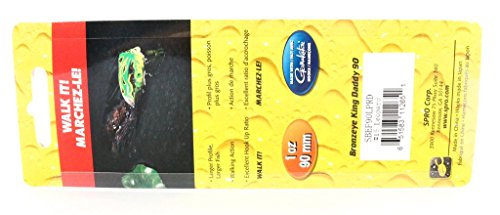 Studio : A.C. Kerman - Fishing Publisher : A.C. Kerman - Fishing Binding : Sports Product Description The Dean Rojas Signature Series SPRO Bronzeye King Daddy 90 frog is designed to catch the biggest and baddest bass out of the nastiest cover. Its large profile and enticing action walk the dog action will tempt even the most pressured fish to hit the King Daddy 90. The King Daddy 90 was designed around a specially made 6/0 Gamakatsu Superline EWG double hook that is unique to the King Daddy 90. Whether you are looking for that kicker fish in a tournament or that fish of a lifetime, tie on the King Daddy 90, throw it in the thickest cover you can find and hold on. 0