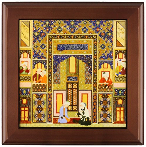 3dRose ft_162527_1 The Meeting of The Theologians-Islamic Persian Art-1540-1550 Ad by Abd Allah Musawwir-Arabian-Framed Tile Artwork, 8 by 8-Inch