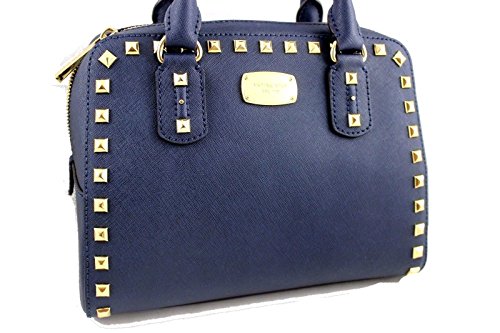 Michael Kors Saffiano Stud Small Satchel Handbag Navy