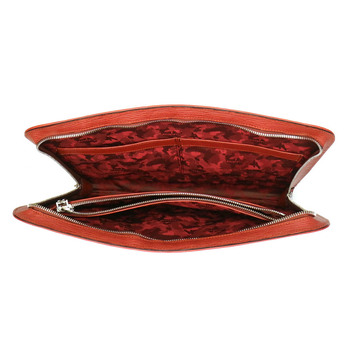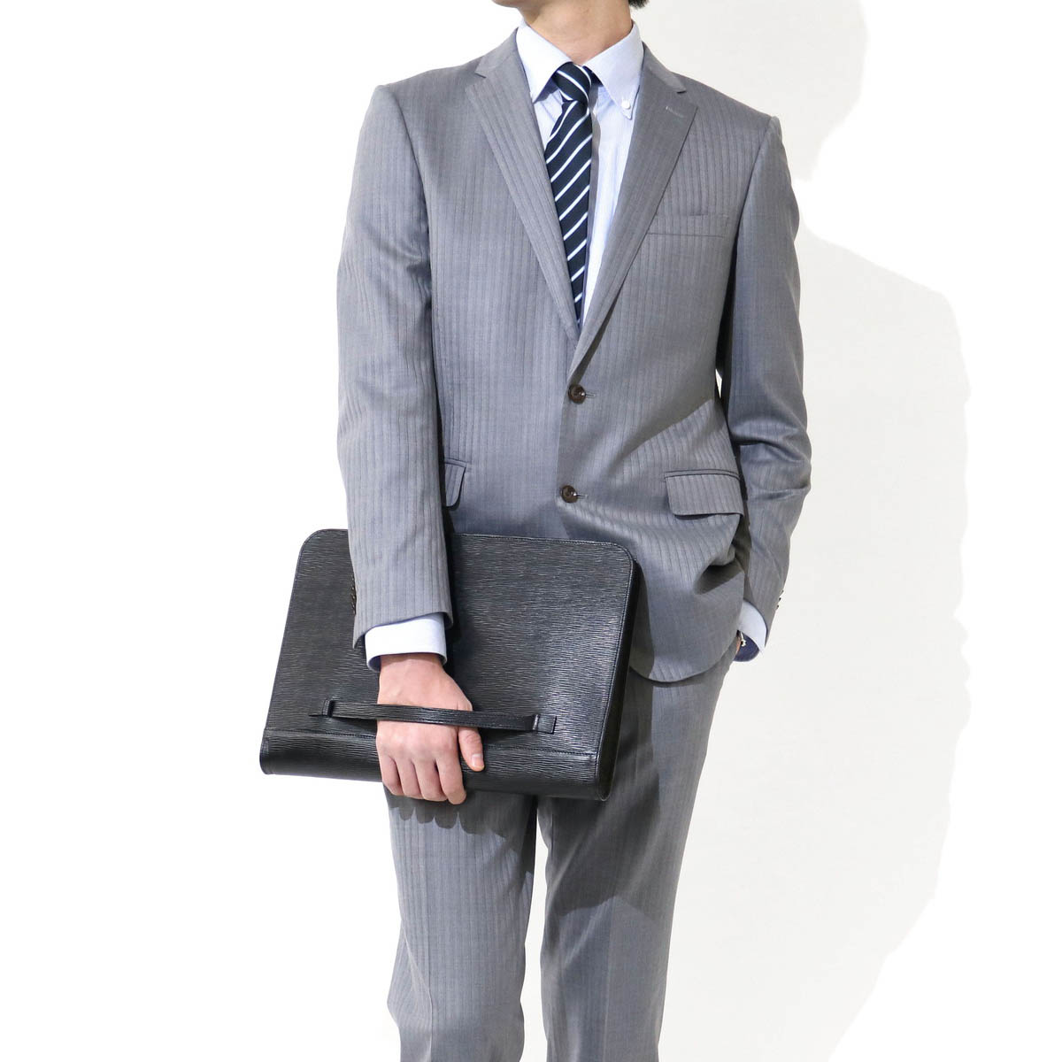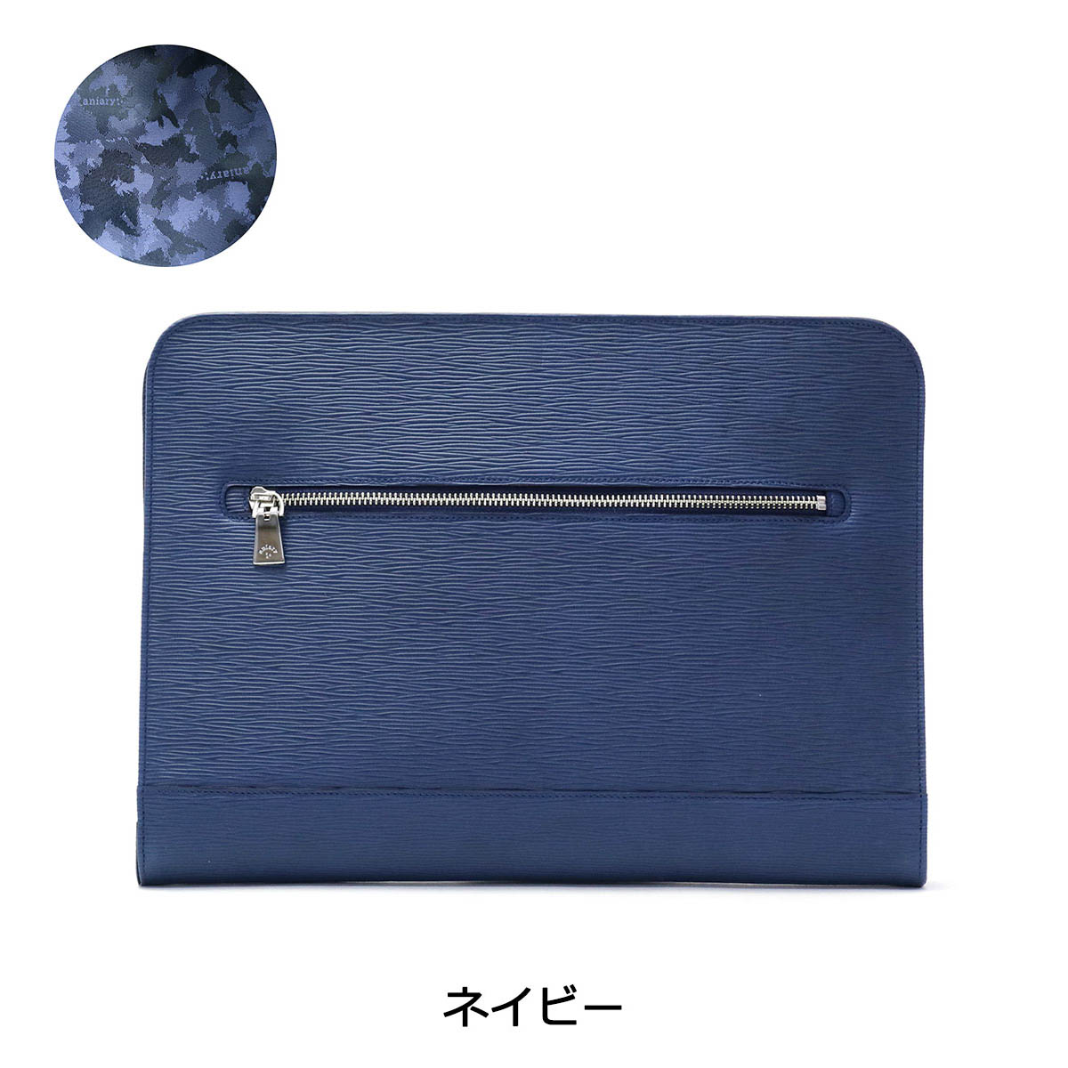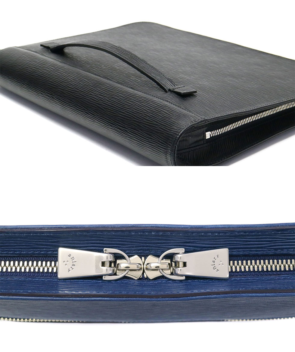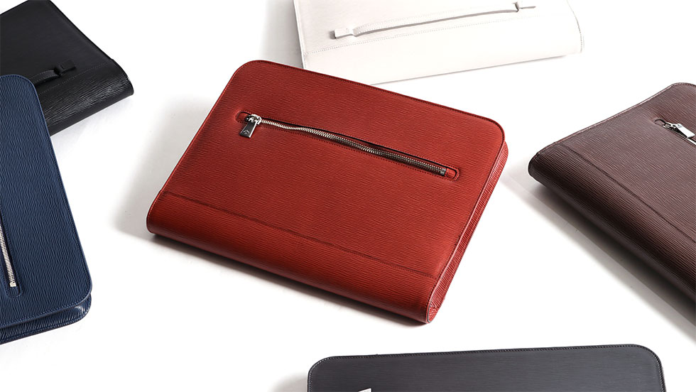 光のあたる海面を感じさせる「ウェーブレザー」を使用したクラッチバッグ。ハリがあり、ジップを引いた時にも革が波立たず、型崩れしないため、書類も安心して持ち運ぶことができます。