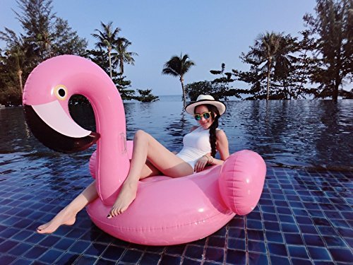Missley Grosses aufblasbares Flamingo Schwimmer Floatie Ride On Rideable Blow Up Sommer Spass Pool Spielzeug Liege Floatie Raft fur Kinder & Erwachsene (Flamingo)