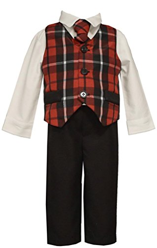 -. Binding : Apparel -. Brand : Bonnie Jean -. Color : Multi -. Department : baby-boys -. Feature : Bonnie Jean Collections / Shirt, Vest, Bow Tie and Pants Set / Plaid Vest and Tie / Red, Black and White Colors / Machine Washable;Cold Water & Lay Flat to Dry -. Model : 8372 -. ProductGroup : Apparel -. ProductTypeName : SHIRT -. Title : Bonnie Jean Boys Baby 4-Pc Christmas Red Plaid Vest Shirt Bow-Tie Pants