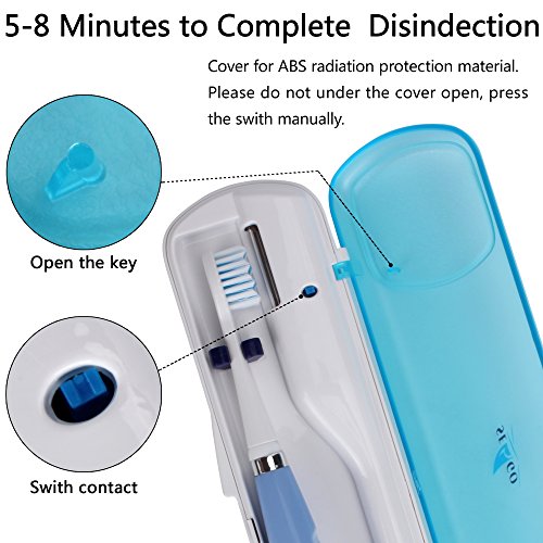 Auto start when door is closed and shut off after 5-8 minute cycle. Eliminates up to 99% of the germs and bacteria on your toothbrush,Uses germicidal UV light technology.