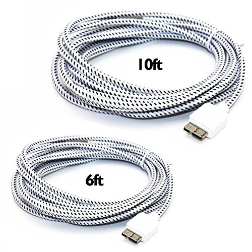 -. Title : Galaxy S5 / Note 3 Charger, KLooie 2-Pack Ultra Long [6ft/10ft] Nylon Braided Durable USB 3.0 Charge Sync Cable for Samsung Galaxy S5 / Note 3