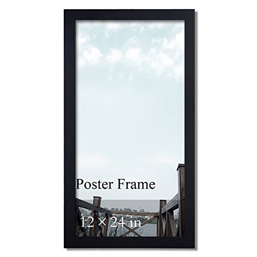 Adeco PF0509 Decorative Black Wood 1.25" Wide Wall Hanging Poster, Picture, Photo Frame, One Opening of 12x24",Black