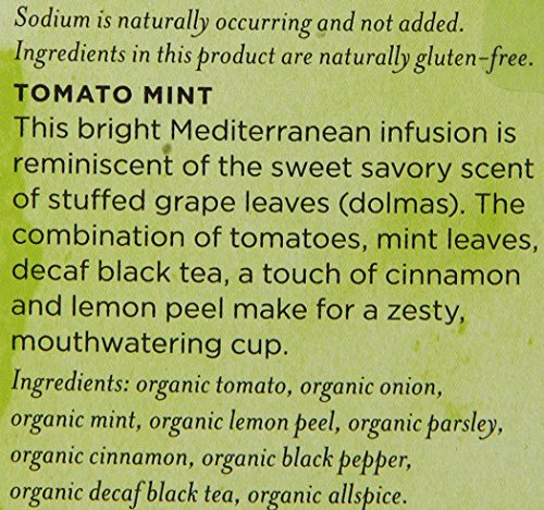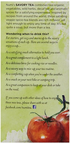 Feature : One box, containing 12 double-chambered tea bags / A bright infusion of tomato, mint and decaf black tea / Numi's Savory Teas are nourishing vegetable, spice and tea infusions / 100% real, organic, non-GMO verified tea and ingr100% real, organic, non-GMO verified tea and ingredients / Gluten free
