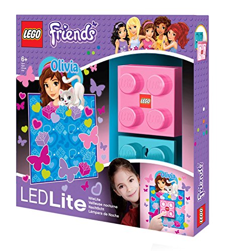 -. Feature : Nachtlicht mit 4 LED Lampen / Design: L.E.G.O Friends / Motiv: Olivia / Größe: ca. 8 x 8 cm / inklusive 11 bunten Stickern / Automatische Abschaltautomatik nach 30 Minuten / Batterie: 3 x AAA (nicht enthalten)
