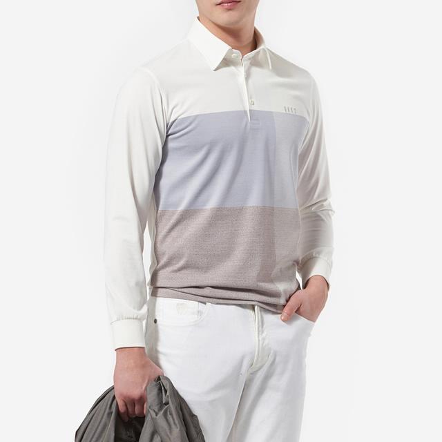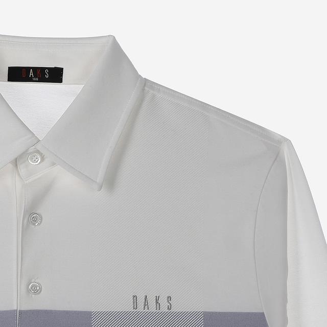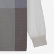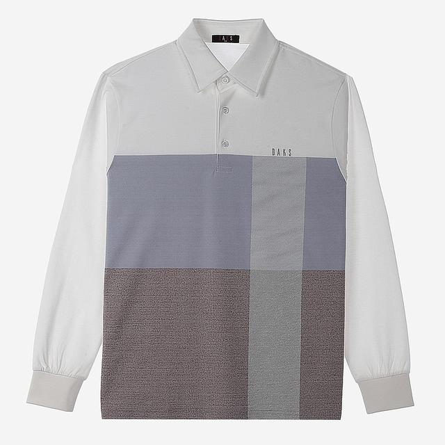 투톤의 멜란지 컬러감을 사용하였으며 전체적인 체크 패턴으로 세련된 외관을 보여주는 카라 티셔츠입니다.