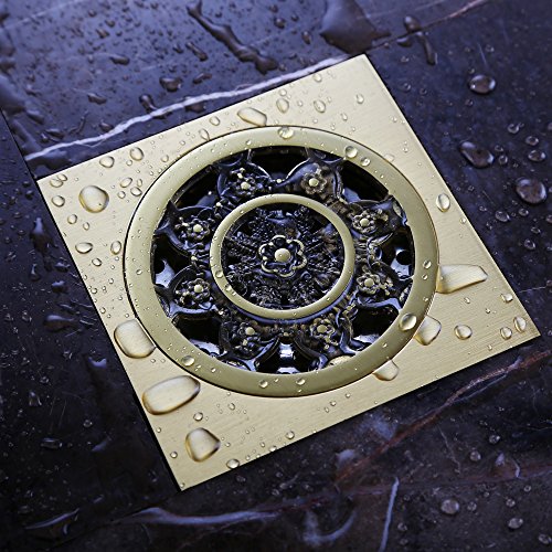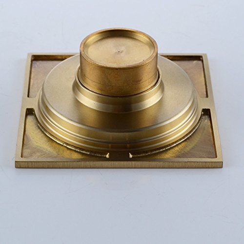KES V141B BRASS Shower Floor Drain with Removable Strainer Antique 4MM-Thick Panel, Polished Brass