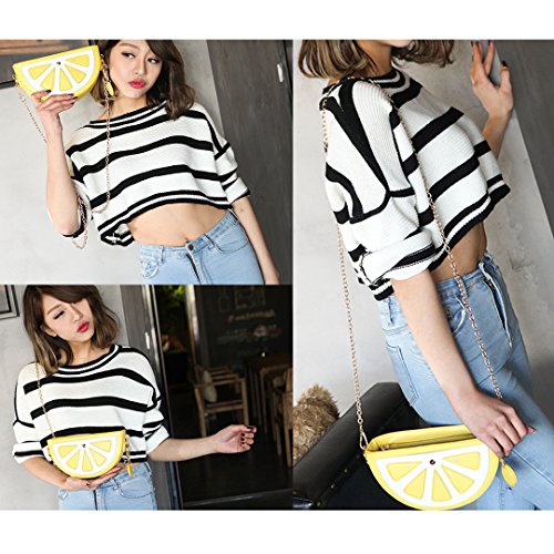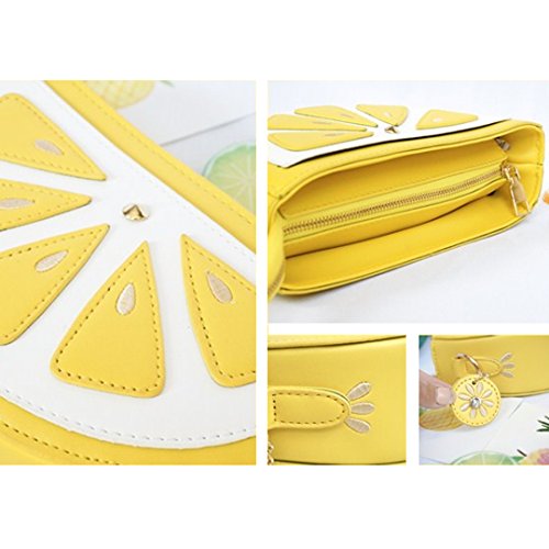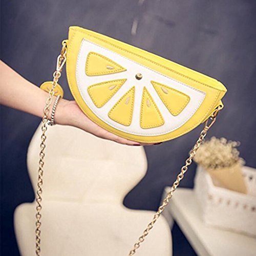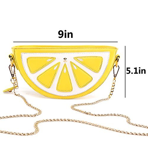 Product Description Material:The bag is made of high-quality PU leather. Dimension:The size of bag is 9.1*5.1*2.8inch,the length of strap is 49inch. Designs: 1.Cute cartoon fruit shape. 2.Metal zipper use smoothly. 3.Shoulder chain is dismountable,resistant to rust,no fade. Functions:1.Large capacity,can storage your cell phones,cash,keys,credit cards,cosmetics and so on. 2.It is suitable for handbag,single shoulder bag,crossbody bag and cosmetic bag. Notes:Please allow little difference due to manual measurement and slight color variation due to different display setting. We are glad to provide service to customers,so please contact us if you have any questions. 0