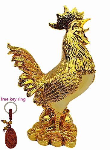 Feng Shui 2017 Auspicious Rooster Statue Figurine decoration for wealth and Career luck+ free rooster key ring(With a Betterdecor Gift Bag)