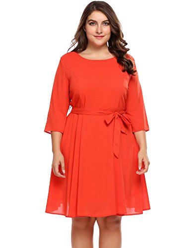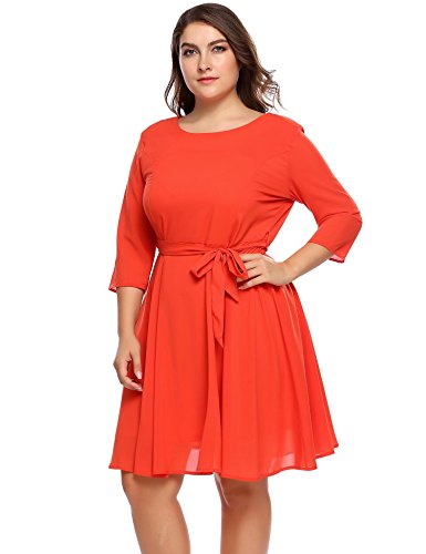 FASHION DESIGN - This plus size chiffon dress has a O-Neck Sleeves, High Waist, Knee Length, A line type and Zipper Back design, which is the latest fashionable design, offers you a fashion and elegant look