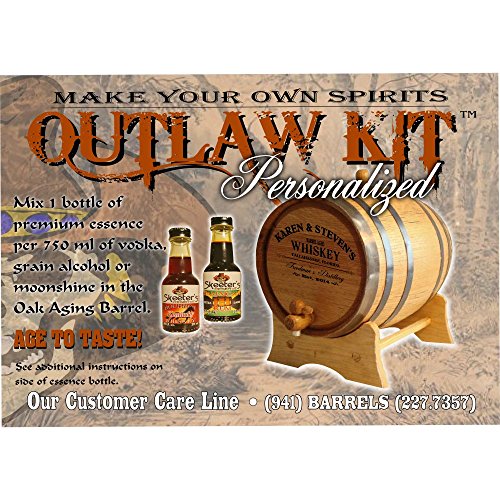 Studio : American Oak Barrel Publisher : American Oak Barrel Product Description Outlaw Kit includes Skeeter's Reserve Premium Essence necessary to create your own Spirit Masterpiece! The barrel is handcrafted from American white oak, bound by 6 hoops of steel and features a stunning laser engraved design! The barrel features a medium toast char. That char is the sugar from the oak released during the firing process. As it cools, the sugar caramelizes on the inner walls and mellows the decanted spirit. The longer your spirits age in this barrel the smoother, refined or mature it becomes. Accommodates approx. 1.25 gallons of spirit. Please enjoy responibly! 0