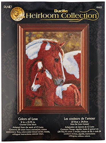 - Bucilla heirloom counted cross stitch kit, 11-inch by 13.75-inch, colors of love