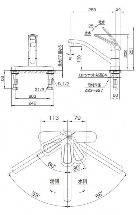 | 仕様 | JISマーク取得済 節湯C1、節湯B 節水水栓 エコ位置クリック 吐水口116度回転 |