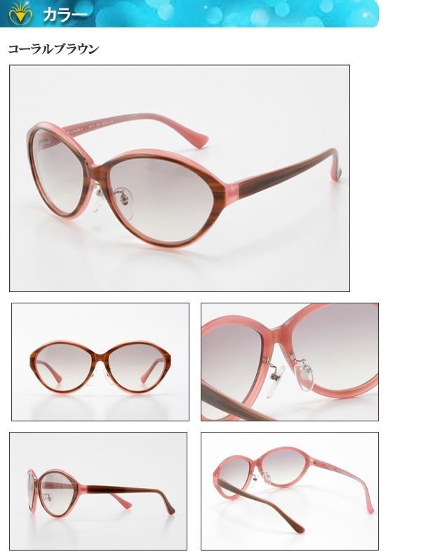 | 女性らしいフォックスシェイプに柔らかなラウンドシェイプを掛け合わせたデザイン。コーラルブラウンはブラウンとピンクの間にホワイトを挟んだ3層構造により、ブラウンが明るくきれいに浮かび上がり、肌なじみが非常に良いカラーに仕上がっています。また、ロイヤルベージュは日本人のお肌の色と非常に相性が良く、かけると自然に調和して優しい印象に。 |