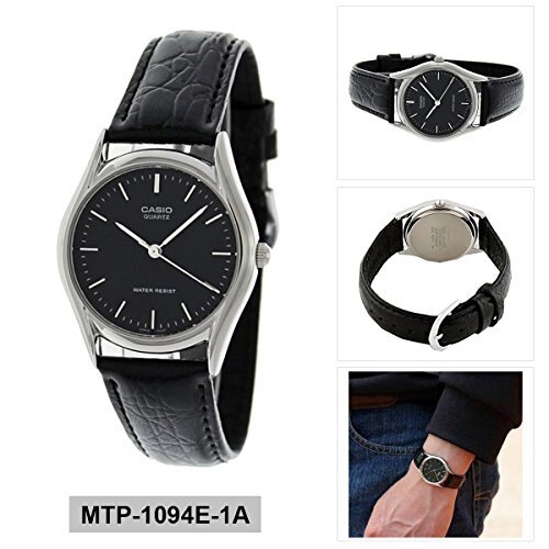 Casio Men's Black Leather Strap Watch, Black Dial, MTP1094E-1A