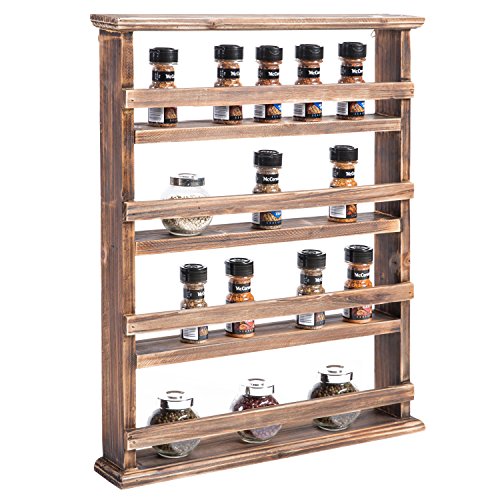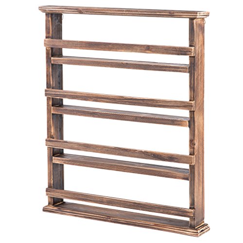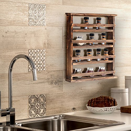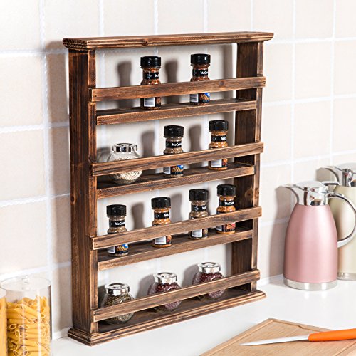 4 Tier Country Rustic Wall Mounted Wood Spice Rack Display Shelves, Brown