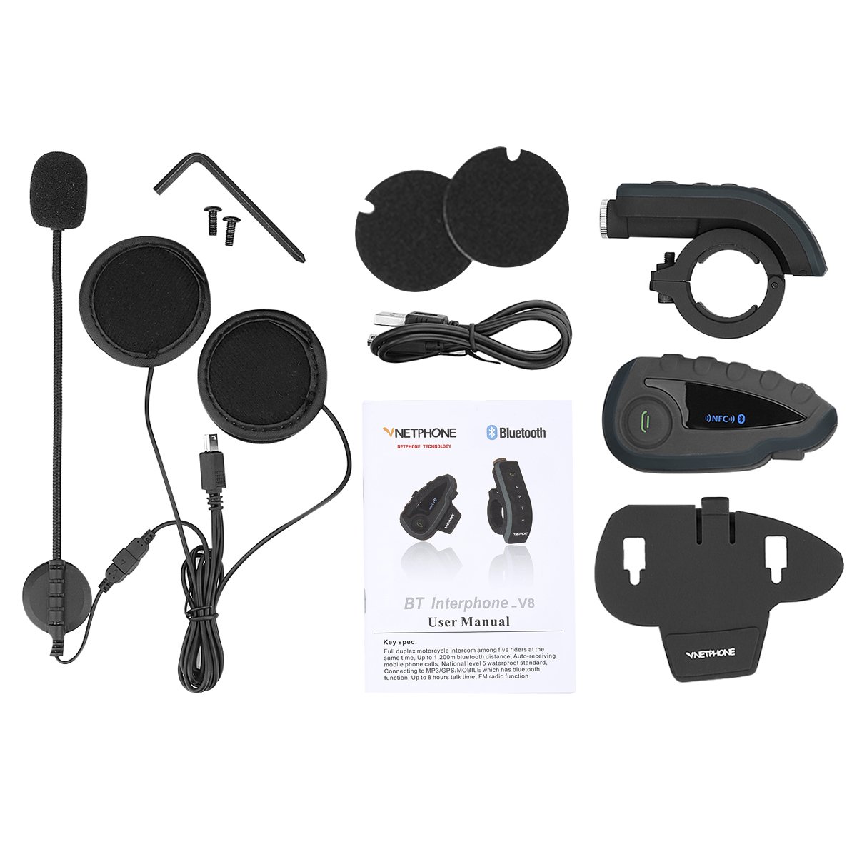 1 x Vetphone V8 Bluetooth Intercom for Motorcycles