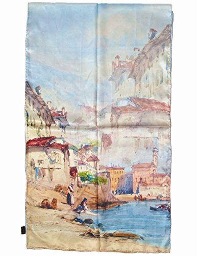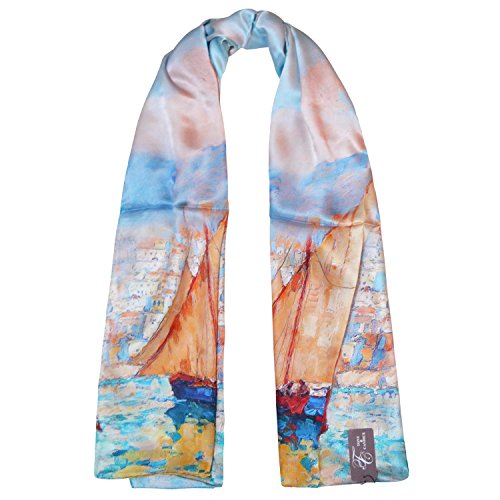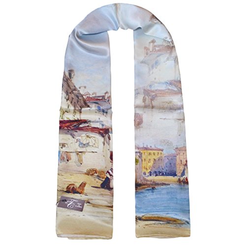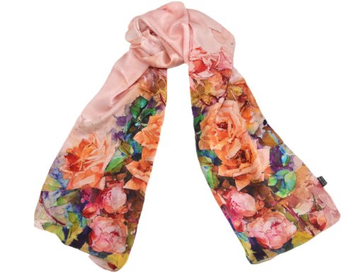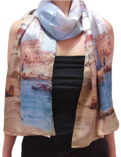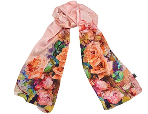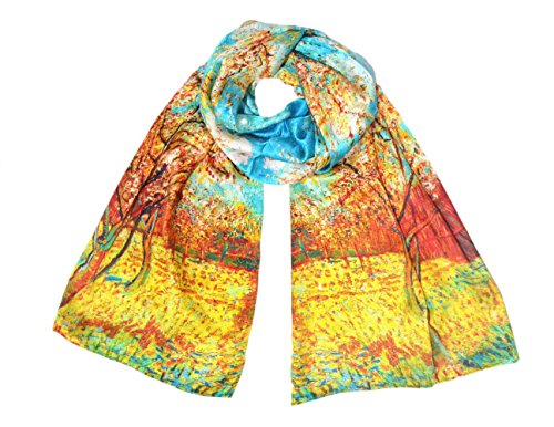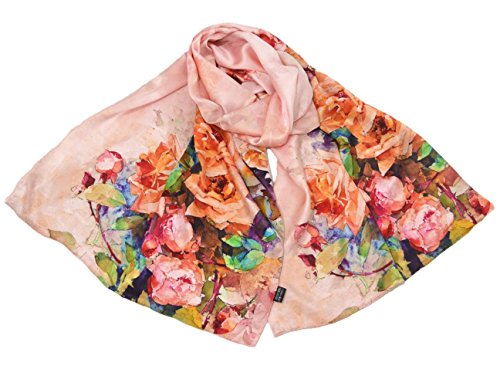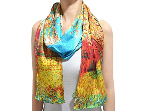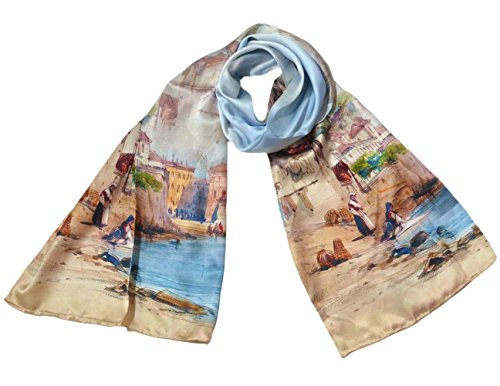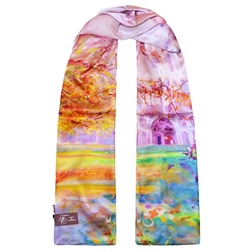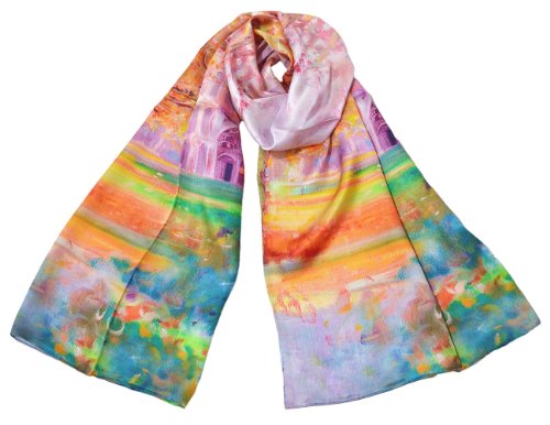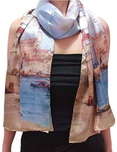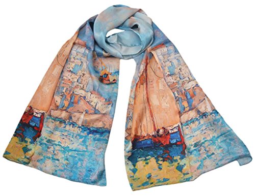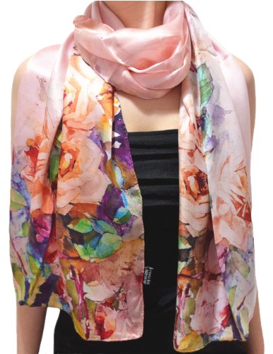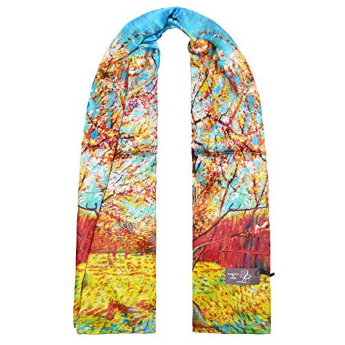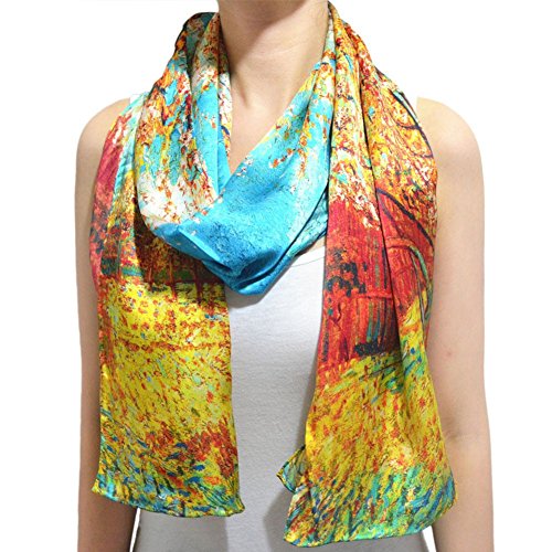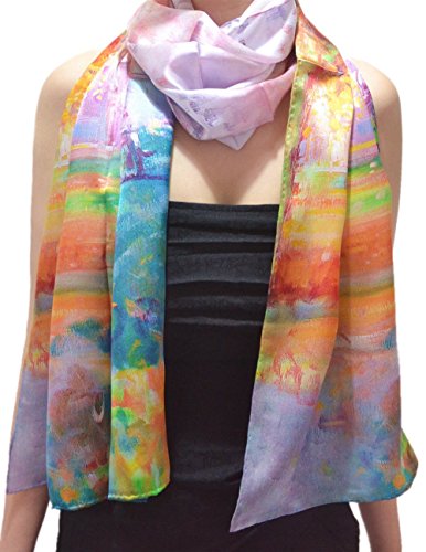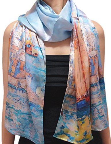 | TONY CANDICE (TM) Women's Oil Paintings Printed 100% Silk Long Scarf Shawl, 69"L*20.5"W |