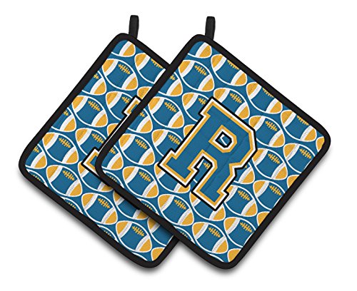 Caroline's Treasures Letter R Football Blue & Gold Pair of Pot Holders CJ1077-RPTHD, 7.5HX7.5W, Multicolor