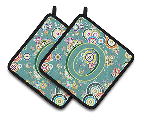 Caroline's Treasures Letter O Circle Teal Initial Alphabet Pair of Pot Holders CJ2015-OPTHD, 7.5HX7.5W, Multicolor