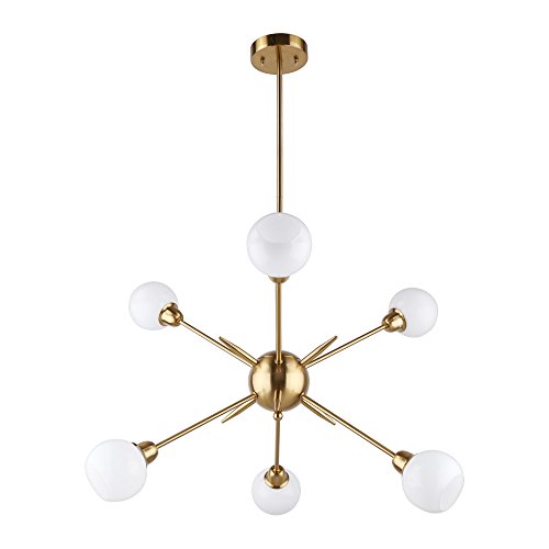 Sputnik Chandelier - Housen Solutions 6 Lights Modern Pendant Lighting Brass Ceiling Light Fixture, UL LISTED