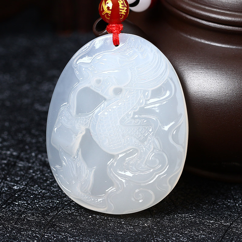 开光属虎人的吉祥物【祥安阁龙财旺】白玉髓吊坠