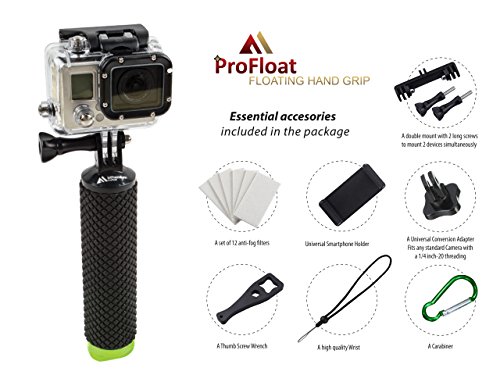 ►FREE ACCESSORIES SET INCLUDED - GET MORE FOR YOUR MONEY: Added essential accessories: (1). A double mount to mount 2 devices simultaneously. (2). 1 x Universal Smartphone Holder. (3). A Universal Conversion Adapter (Fits any standard Camera with a 1/4 inch-20 threading). (4). A set of 12 anti-fog filters. (5). A high quality Wrist Strap. (6). A Carabiner (7). A Thumb Screw Wrench. ProFloat is backed by 100% guarantee that you are fully satisfied with your product or receive your money back.
