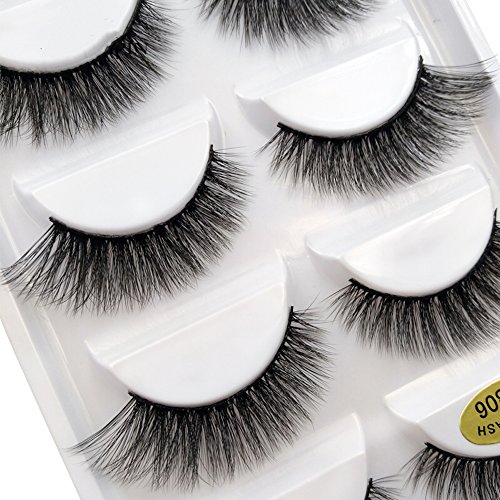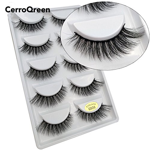 CerroQreen Eyelashes 5 Pairs Pack 3D Fake Eyelashes Mink Fur Hand-Made Dramatic Thick Crisscross Deluxe False Lashes Black Nature Fluffy Long Soft Reusable