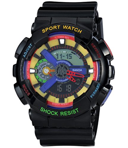 Seek 【발렌타인】맨즈 다이버스 다이버 미채 개구리 무늬 LED 라이트 다기능 손목시계 디지털 표시 방수 알람 스톱워치 스포츠 아웃도어 캐주얼 워치 【 오리 더