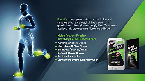 - PROTECTS THE FEET & HANDS. Applied to the feet, BlisterZone prevents friction and blisters for wearers of all types of footwear: athletic shoes, boots, high heels, new shoes, skates, hiking boots, ballet shoes, and dance shoes. Great for everyday use.