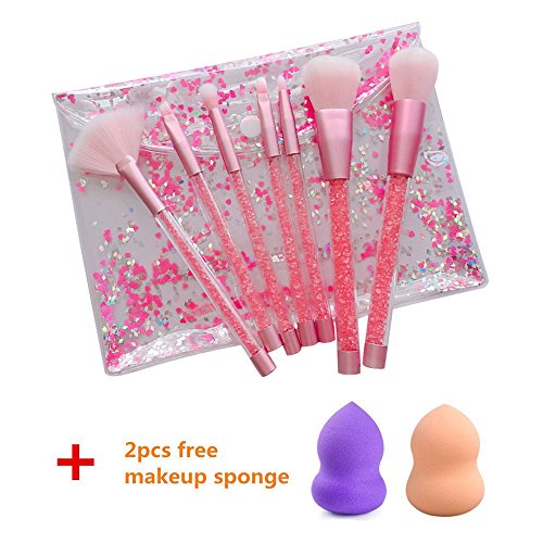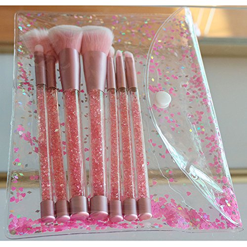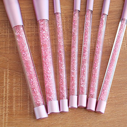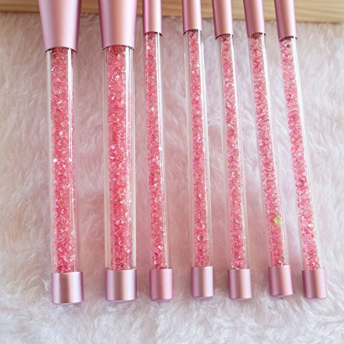 ONEGenug Makeup Brushes Set, 7pcs Pink Unique Shiny Crystal Glitter Design, Cosmetic Brushes, Professional Makeup Tools