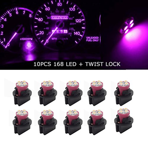 Partsam T10 194 LED Light bulb 168 LED Bulbs Bright Instrument Panel Gauge Cluster Dashboard LED Light Bulbs Set 10 T10 LED Bulbs with 10 Twist Lock Socket – Pink