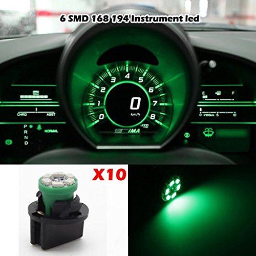 Partsam T10 194 LED Light bulb 168 LED Bulbs Bright Instrument Panel Gauge Cluster Dashboard LED Light Bulbs Set 10 T10 LED Bulbs with 10 Twist Lock Socket – Green