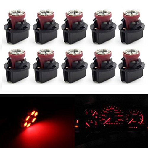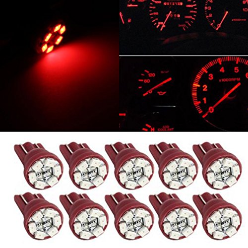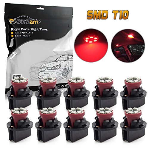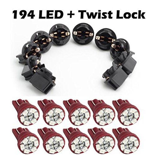 Partsam T10 194 LED Light bulb 168 LED Bulbs Bright Instrument Panel Gauge Cluster Dashboard LED Light Bulbs Set 10 T10 LED Bulbs with 10 Twist Lock Socket – Red