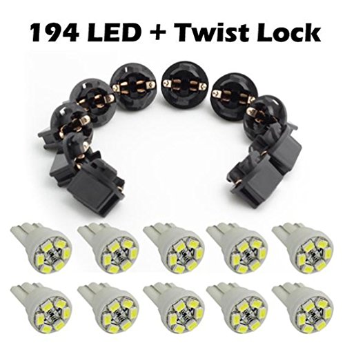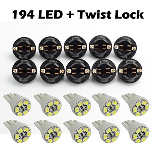 Partsam T10 194 LED Light bulb 168 LED Bulbs Bright Instrument Panel Gauge Cluster Dashboard LED Light Bulbs Set 10 T10 LED Bulbs with 10 Twist Lock Socket – White