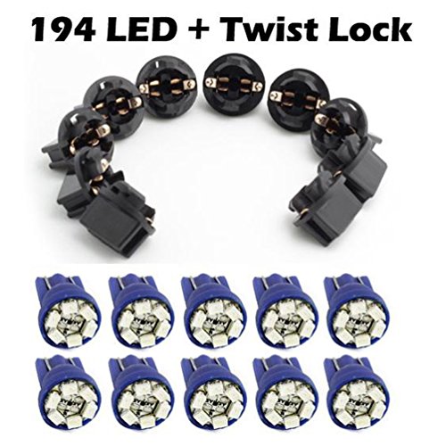 Partsam T10 194 LED Light bulb 168 LED Bulbs Bright Instrument Panel Gauge Cluster Dashboard LED Light Bulbs Set 10 T10 LED Bulbs with 10 Twist Lock Socket – Blue